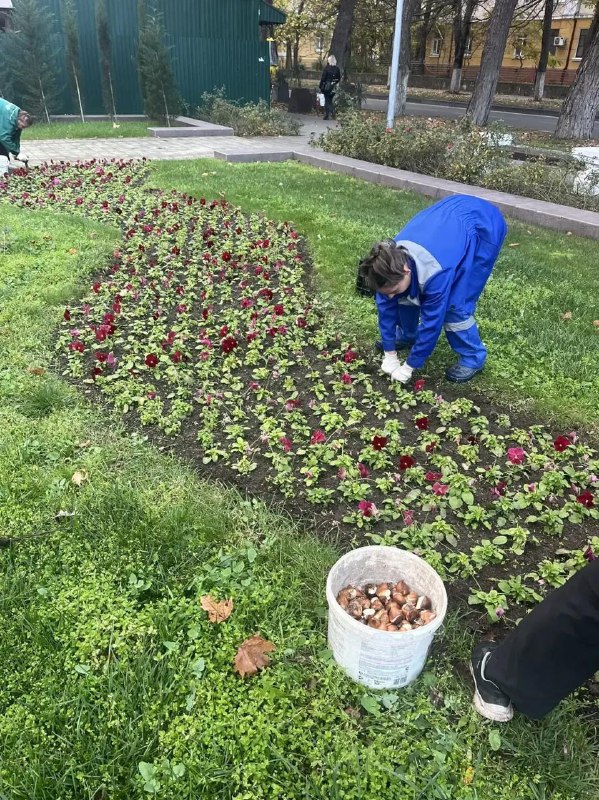Также на зимовку высажено порядка 70 тысяч луковиц тюльпанов пяти сортов. Они будут находится в земле до весны, а потом взойдут, подрастут и украсят город с наступлением тепла.