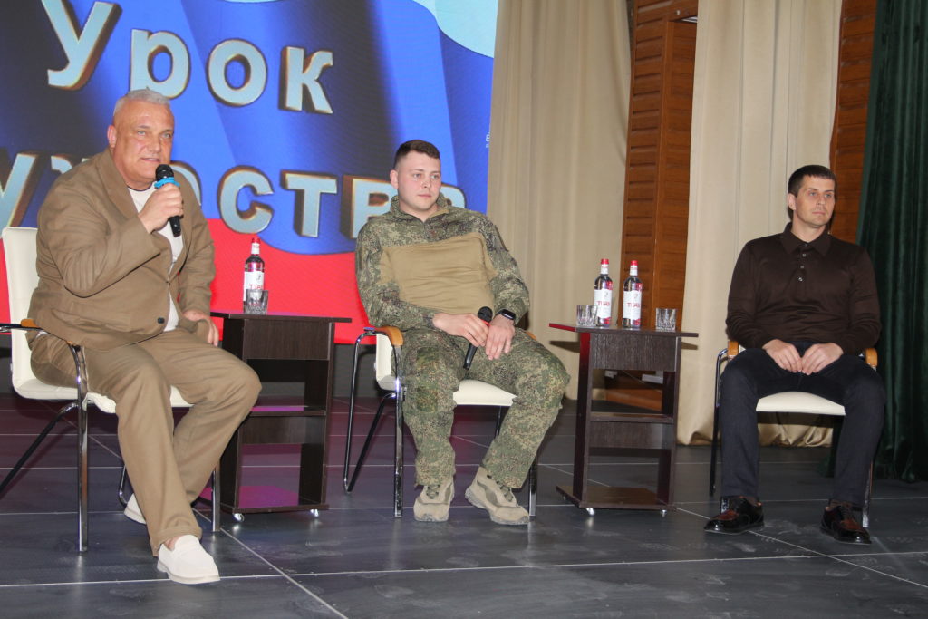 Совсем недавно этот молодой человек в военной форме был таким же как эти парни и девчонки, так же сидел на лекциях и, наверняка, участвовал в таких же вот уроках мужества, задавая вопросы ветеранам Великой Отечественной и боевых действий. А сегодня он герой дня и, заметно смущаясь отвечает на вопросы студентов.