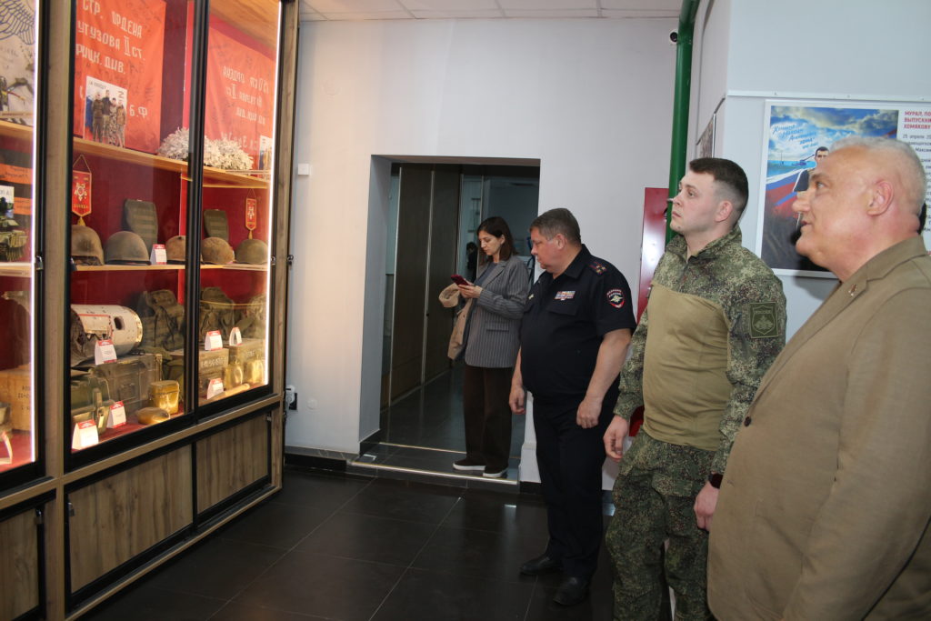 Сразу после урока мужества его участники прошлись по кабинетам, где Ярослав получал знания. Также ему показали музей боевой славы, где представлены экспонаты Великой Отечественной войны и специальной военной операции, связанные с выпускниками-героями СВО, или привезенные из поездок на фронт. Ярослав также приготовил сюрприз – передал в музей номер с подбитой машины ВСУ.