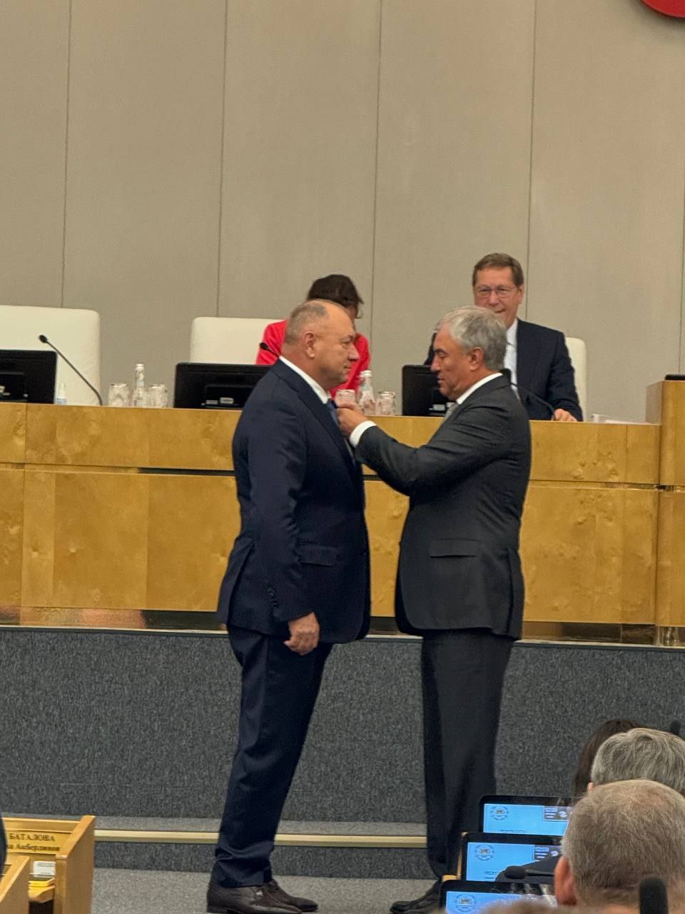 Сегодня высокую государственную награду за особые заслуги перед Отечеством парламентарию вручил председатель Госдумы Вячеслав Володин.