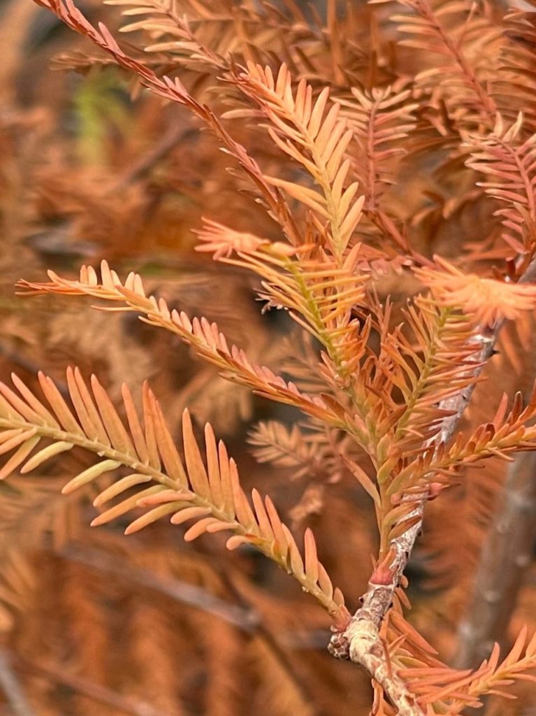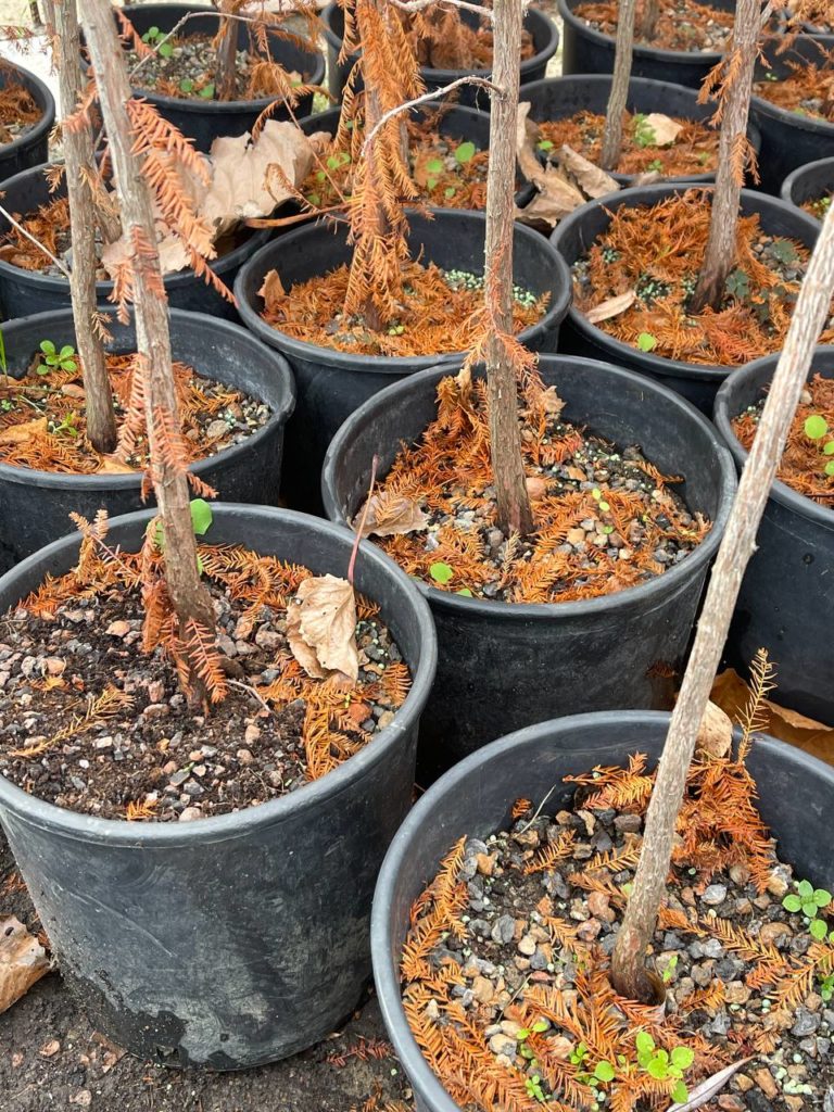 Сегодня, накануне завтрашней высадки, мы зашли в «Зеленстрой» проведать юные кипариски. Вот такие они сейчас – приобрели красный оттенок, как у взрослых деревьев, потому что готовятся скинуть хвою на зиму.