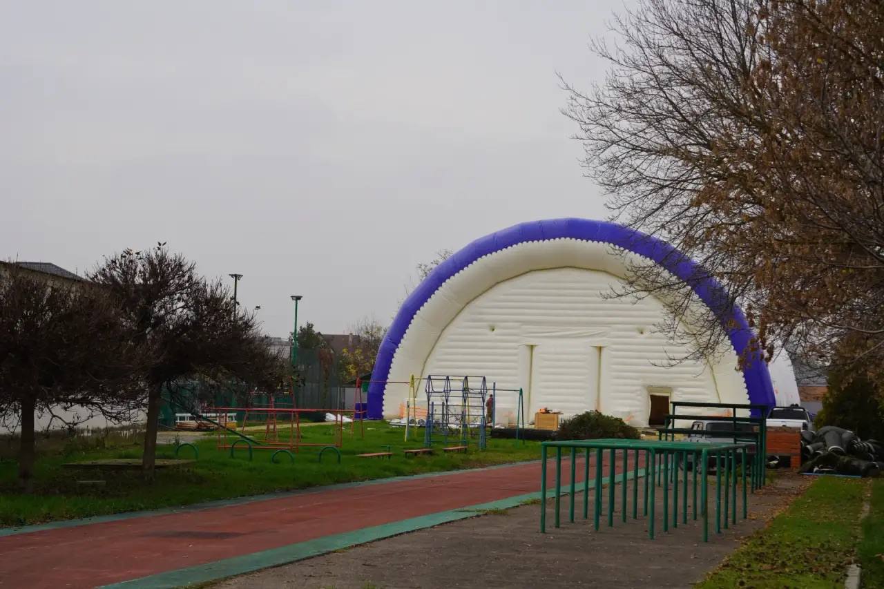 «Для занятий физкультурой на территории образовательной организации было решено соорудить надувную конструкцию. Несмотря на быстроту и легкость в установке, относительную дешевизну и мобильность срок службы такого пневмокаркасного арочного ангара – 10 лет», — указывает депутат Государственной Думы Иван Демченко.