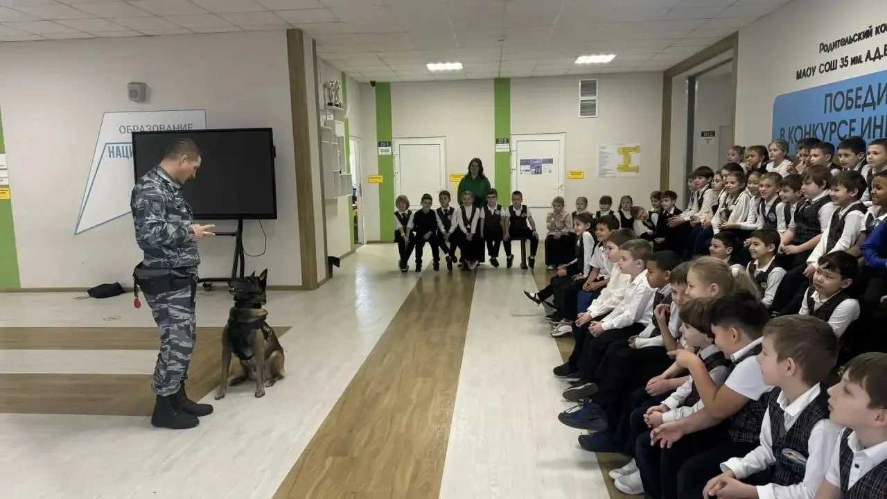 В школе №35 побывал кинолог Отдела МВД России по городу Анапе Олег Никулин и его верный напарник Маркус, бельгийская овчарка малинуа.