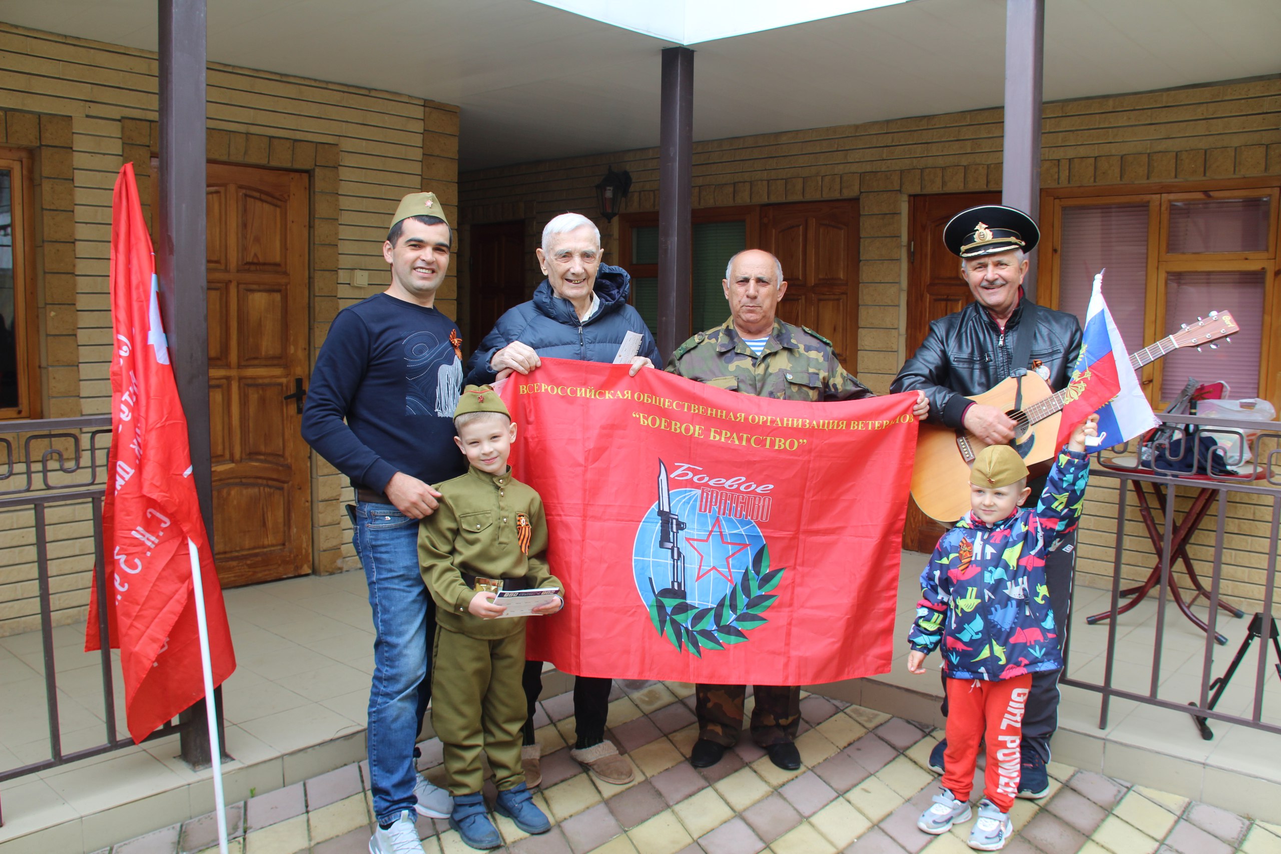 Дома у фронтового танкиста мини-концерт организовал заслуженный артист России, капитан II ранга Анатолий Калекин. Ему подпевали 6-летний внук Дима со сверстником Артемом Павленко.