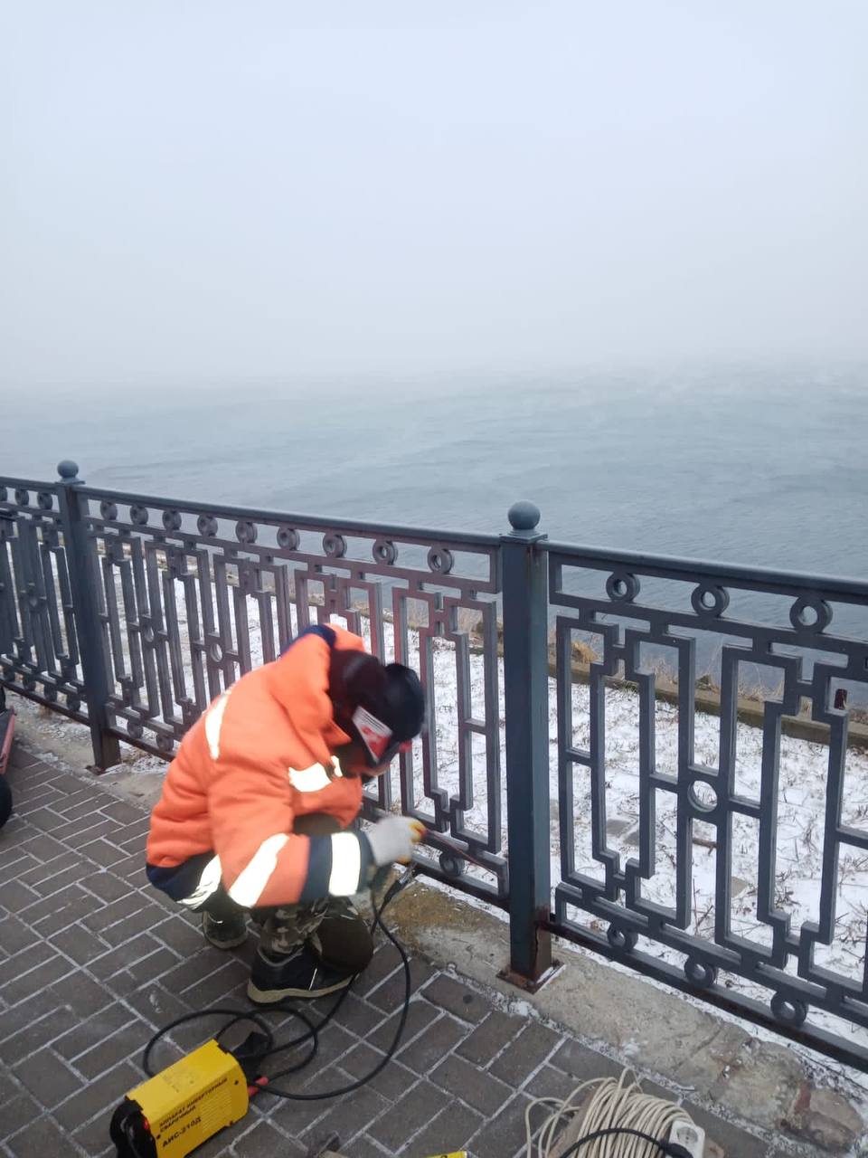 Специалисты МБУ «Благоустройство» восстановили секции ограждений набережной и старого кладбища, закрепили вырванные ветром лавочки на Ленина, в районе бульвара Евскина/Ленина предприятие устраняет повреждение рекламной конструкции.