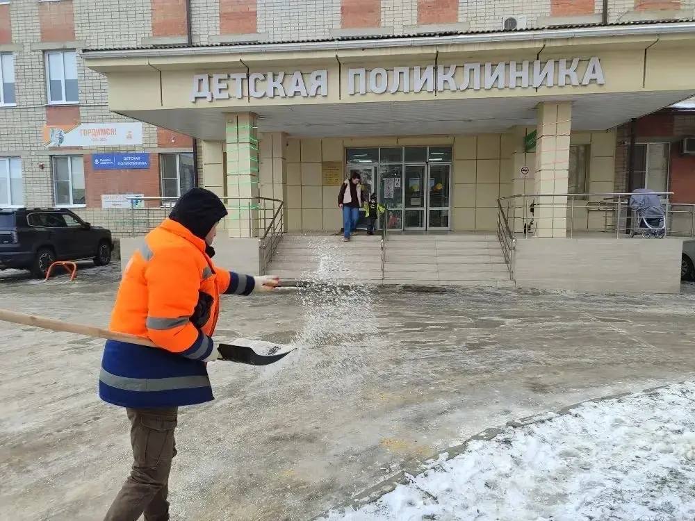 За содержание дворов отвечают управляющие компании. Кроме того, в соответствии с Правилами благоустройства, прилегающие территории (у магазинов, офисов, организаций) обязаны очищать от снега и обрабатывать от гололёда собственники или арендаторы.