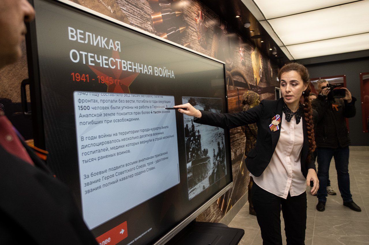 Интерактивные панели рассказывают о событиях Великой Отечественной войны, Афганистана, Чечни, Специальной военной операции.