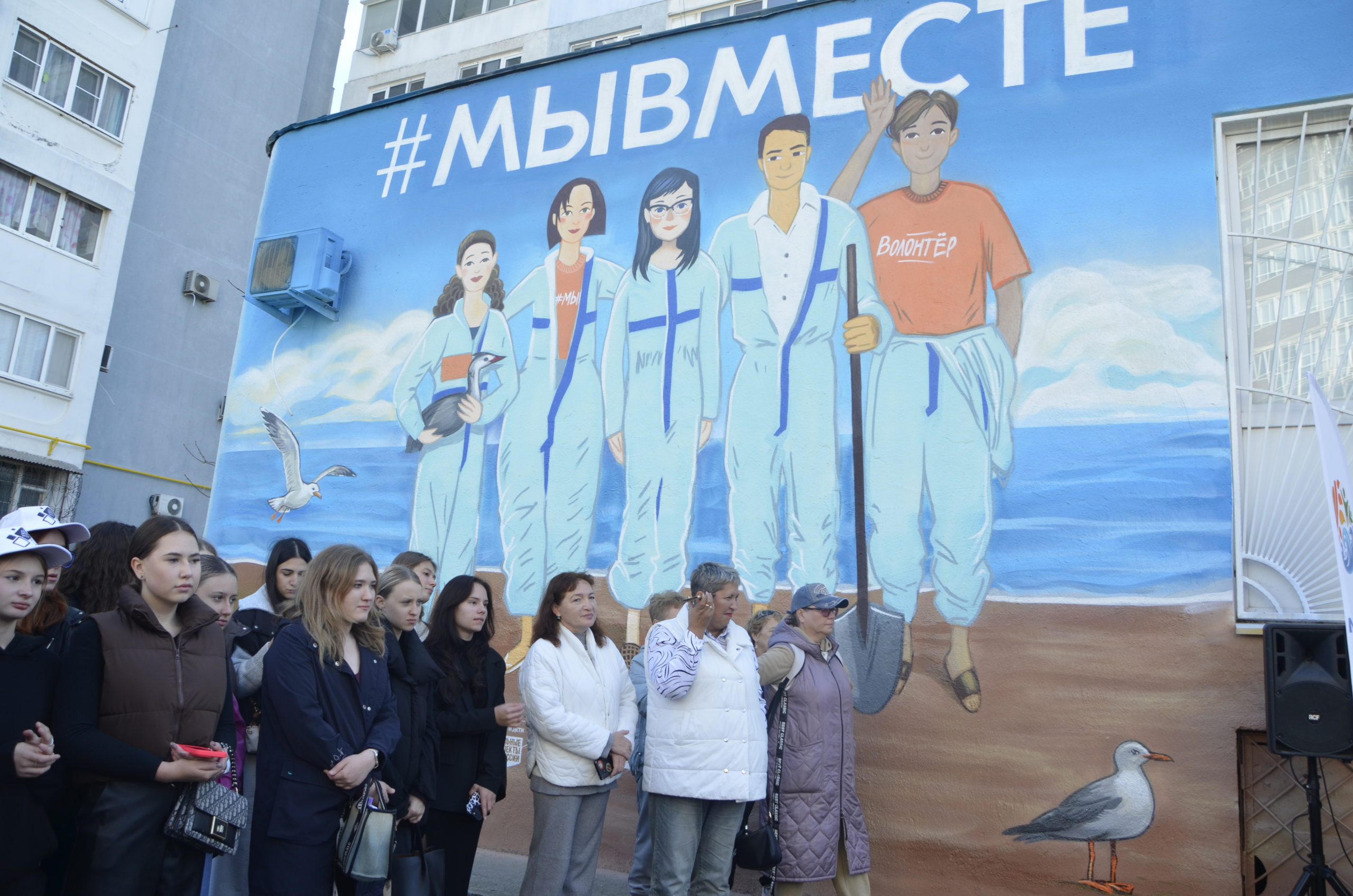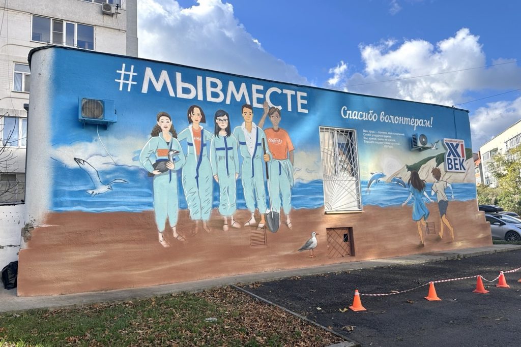 Мероприятие прошло на бульваре Евскина, у стены с изображением ребят, принимавших участие в ликвидации последствий ЧС с мазутом. А располагается новый мурал на здании молодежного центра «21 век».