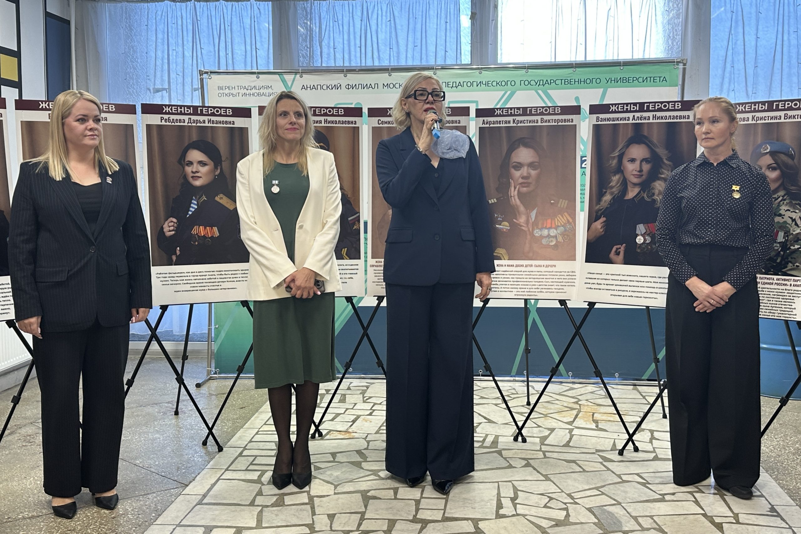 В торжественной церемонии открытия приняли участие директор Анапского филиала МПГУ, заместитель председателя Совета Анапы Елена Некрасова, руководитель проекта Евгения Беляева, жёны героев Ася Иванова и Елена Прекрасная, студенты и преподаватели филиала.