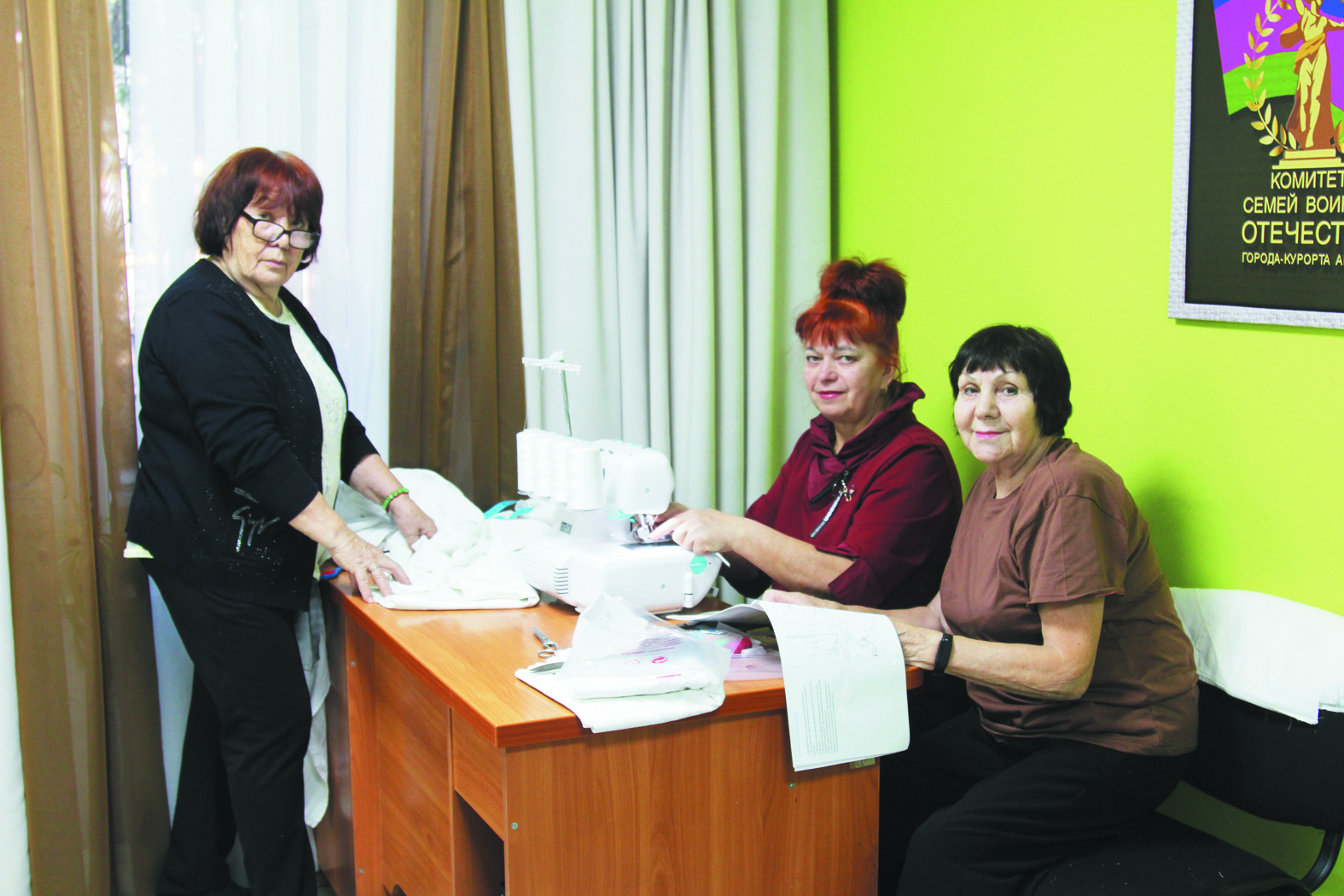 В мастерской трудятся волонтеры Нина Машукова, София Цепкало, Валентина Семёнова, Марина Орлова, Галина Гаврилова, Любовь Халаимова. Стрекочут швейные машинки – одну из них вместе с оверлоком подарили партнеры организации, участницы «Арт-сообщества Анапы».